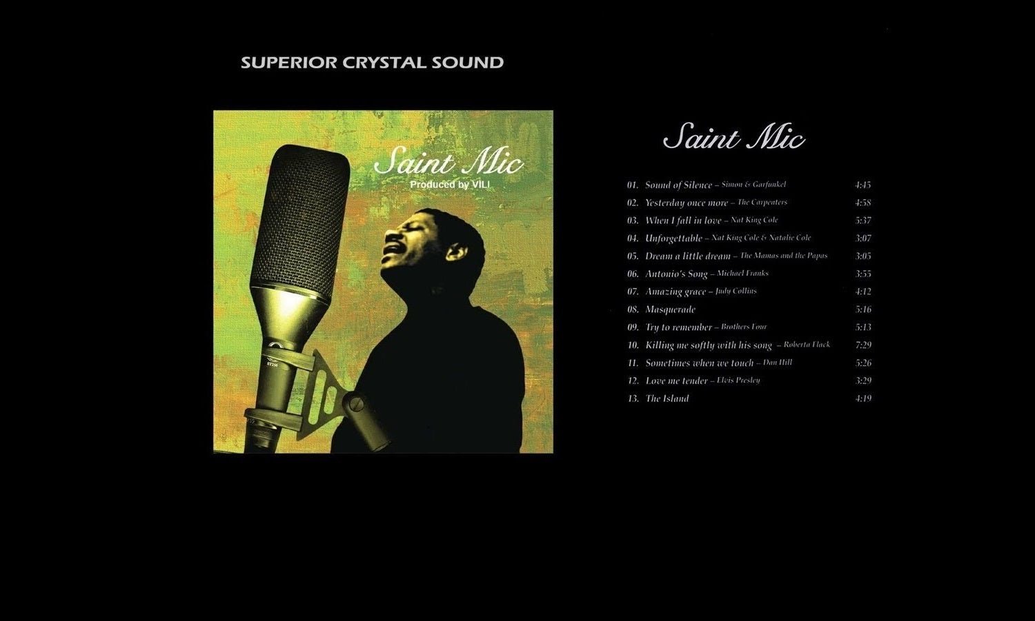 "Saint Mic" offers a selection of his interpretations of timeless classics by Simon & Garfunkel, Nat King Cole, Natalie Cole, The Carpenters, Roberta Flack, Elvis Presley, and many more. Scotty Wright is accompanied by jazz singer Be Be De Vovex and Bob Swaski on piano. The album will be released in a limited and numbered edition in UHQLP format.